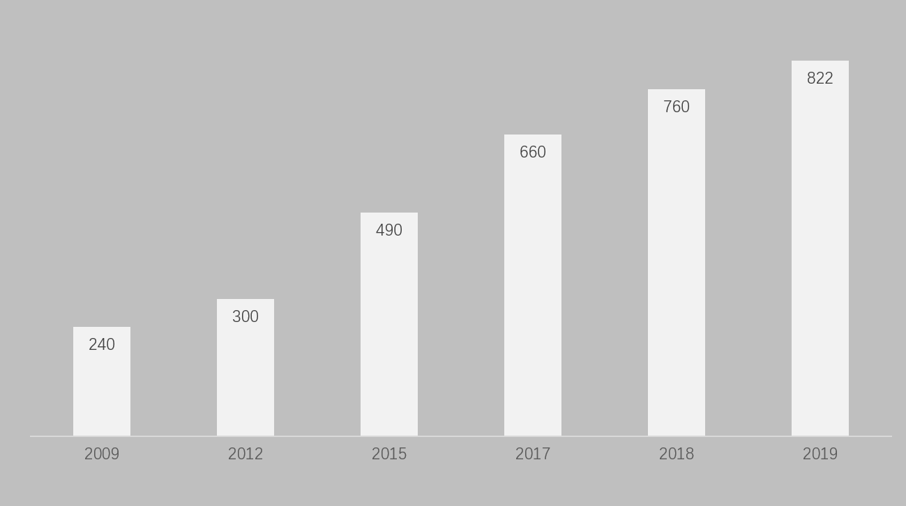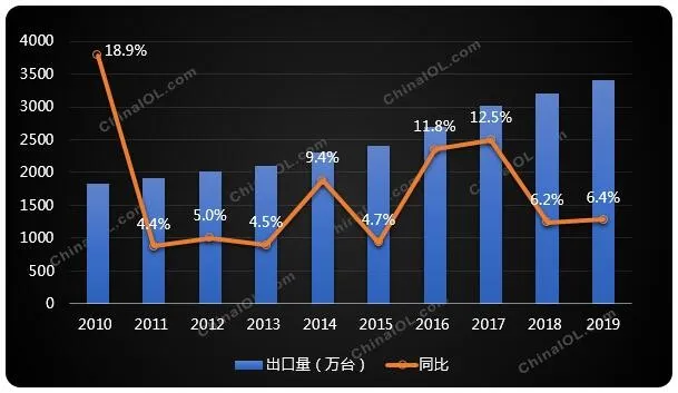 2010-2019年中国冰箱行业出口量走势 数据来源:产业在线
